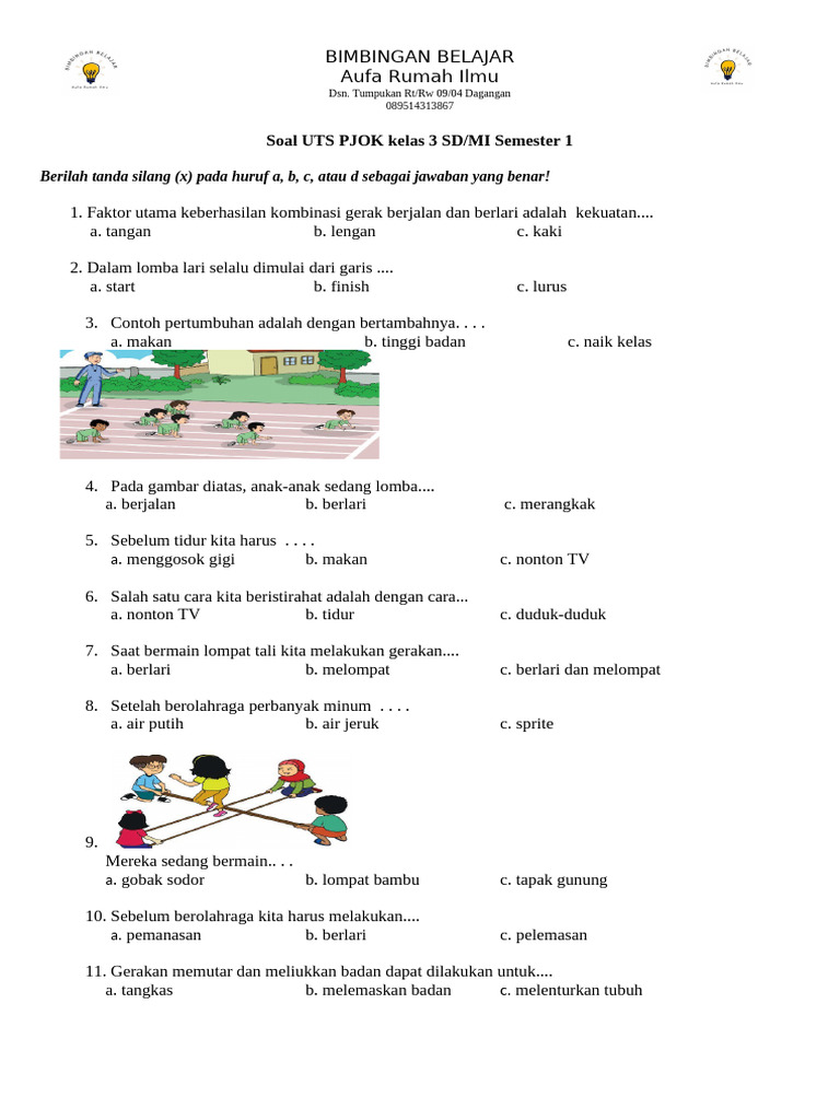 Ujian Tengah Semester (UTS) merupakan salah satu evaluasi penting dalam proses pembelajaran. Ujian ini bertujuan untuk mengukur pemahaman dan kemampuan siswa terhadap materi yang telah dipelajari selama satu semester. Pada mata pelajaran Pendidikan Jasmani, Olahraga, dan Kesehatan (PJOK) kelas 4 SD semester 2, materi yang diujikan biasanya mencakup berbagai macam aktivitas fisik, permainan, dan pengetahuan dasar tentang kesehatan. Artikel ini menyajikan contoh soal UTS PJOK semester 2 kelas 4 SD yang dapat digunakan sebagai bahan latihan siswa sebelum menghadapi ujian sesungguhnya. Soal-soal yang disajikan mencakup berbagai macam bentuk soal, seperti pilihan ganda, isian singkat, dan uraian, sehingga dapat memberikan gambaran yang komprehensif tentang materi yang diujikan.